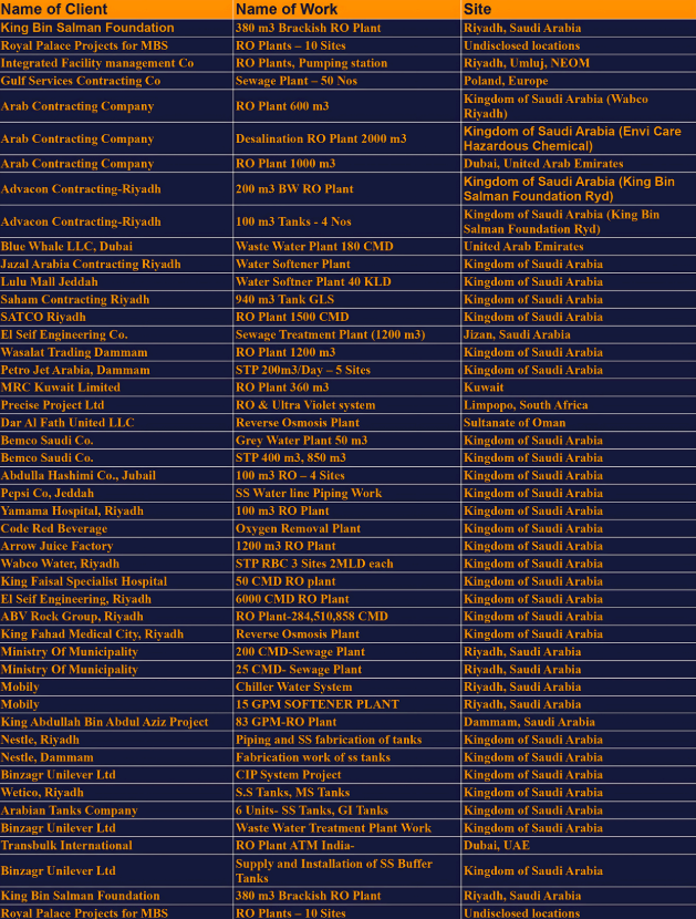 Our Clients | RO plant suppliers | Water Treatment | Dubai,UAE