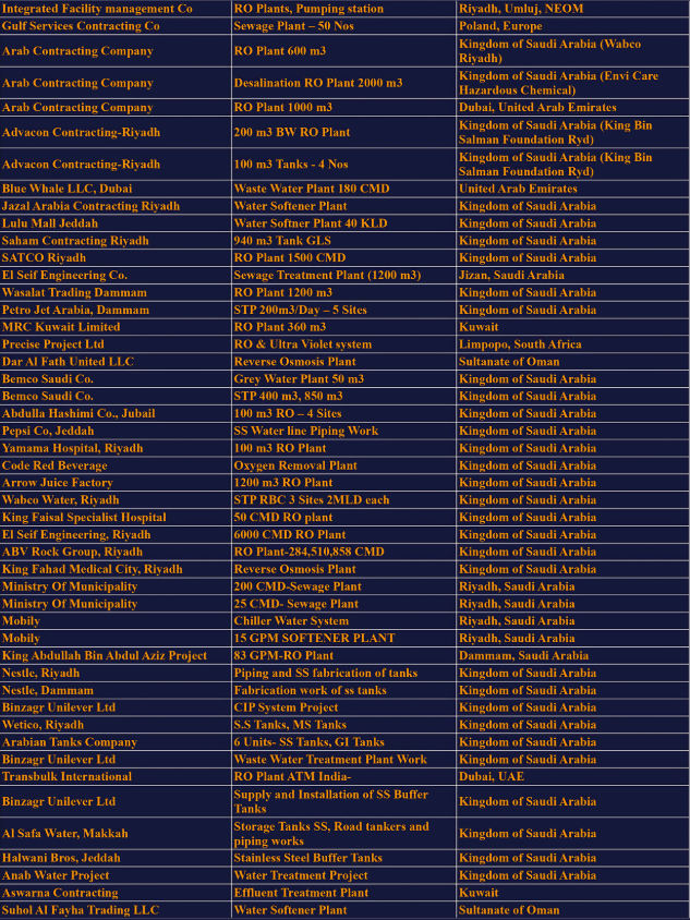 Our Clients | RO plant suppliers | Water Treatment | Dubai,UAE
